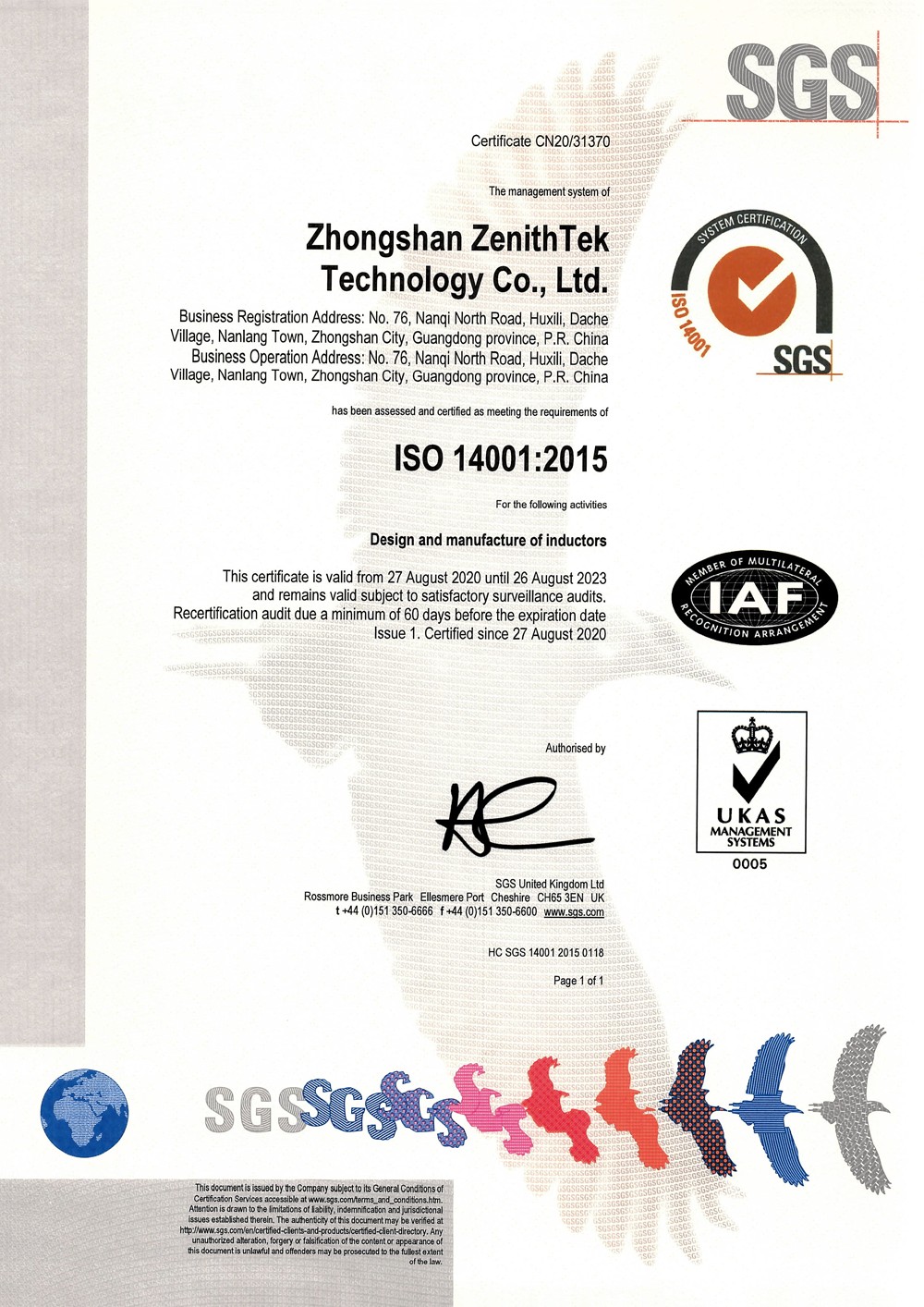 美國佐治亞州蘇瓦尼的 SGS 對我公司的產(chǎn)品做的UL認證